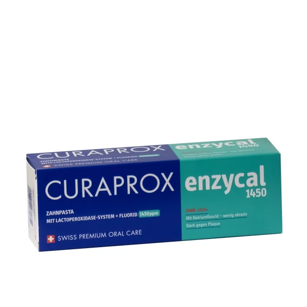 Зубна паста CURAPROX Enzycal — це делікатна профілактична (протикарієсна) зубна паста, яка підтримує природну захисну систему ротової порожнини, що міститься в слині. Ферменти разом з активними фторидами зміцнюють емаль і допомагають захистити поверхню зубів від нальоту. На відміну від більшості загальнодоступних зубних паст, зубна паста CURAPROX Enzycal не містить SLS (Sodium-Lauryl-Sulphate). SLS потрапляє в організм через слизову оболонку порожнини рота і може викликати подразнення.