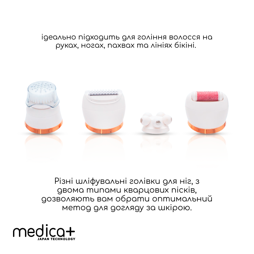 Електрична роликова пилка-пемза 4в1 MEDICA+ BodyControl 4v1 + Насадки (2 шт) (Japan)