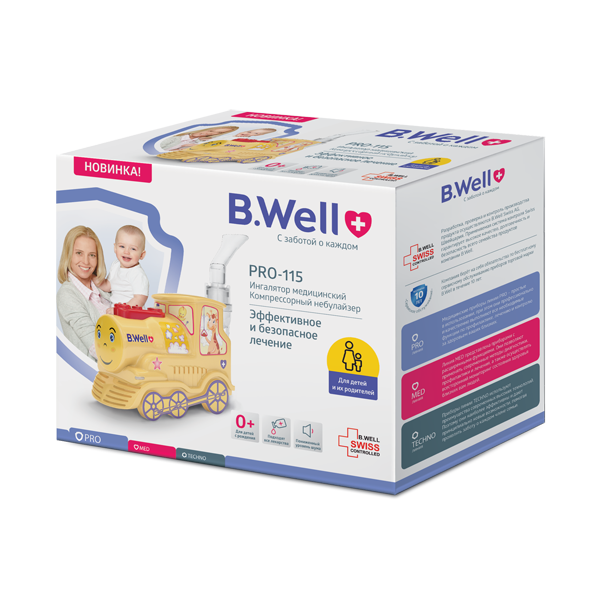 Компанія B. Well світовий виробник високоякісних небулайзерів. Компресорний небулайзер для дітей і дорослих B. Well PRO-115 – професійне лікування і швидка допомога при кашлі, бронхіті та інших захворюваннях дихальних шляхів. Відомості про апарат відповідають Європейському стандарту для небулайзера EN 13544-1, тому він забезпечує професійне лікування для дітей та дорослих в домашніх умовах.