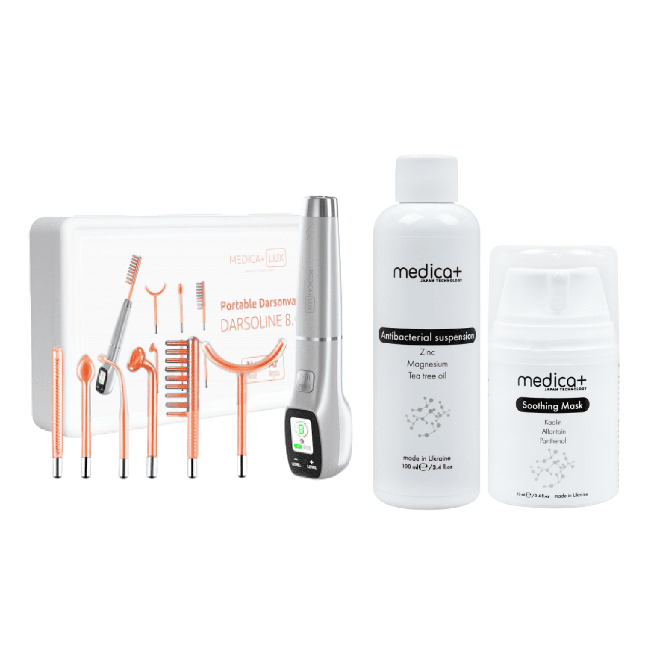 Набір MEDICA+ Lux Darsoline 8.0 + Antibacterial Suspension + Soothing Mask — це професійний догляд і салонний ефект у домашніх умовах.