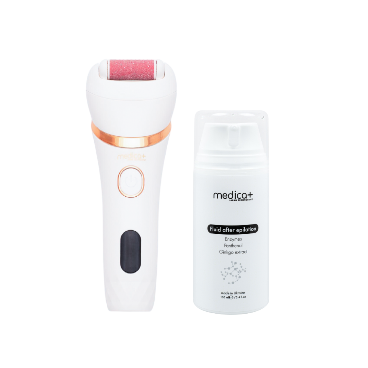 MEDICA+ BodyControl 4в1 — це сучасний мультифункціональний педикюрний набір, який поєднує функції електричної роликової пилки-пемзи та епілятора. У комплекті з флюїдом після епіляції MEDICA+ Fluid After Epilation він забезпечує повний догляд за шкірою — від видалення ороговілої шкіри до глибокого живлення й відновлення після процедур.