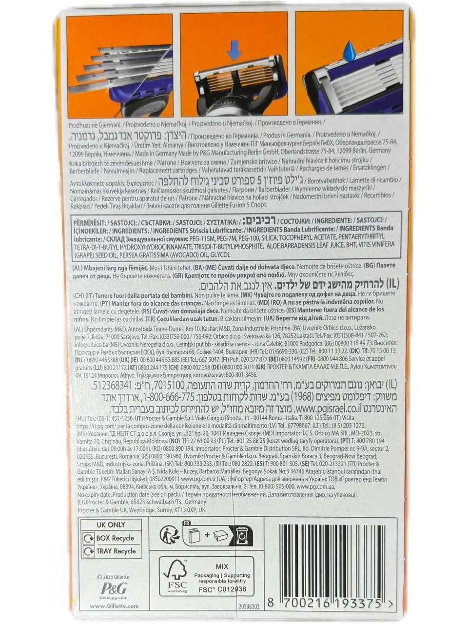 6 змінних картриджів Gillette Fusion 5 SPORT.