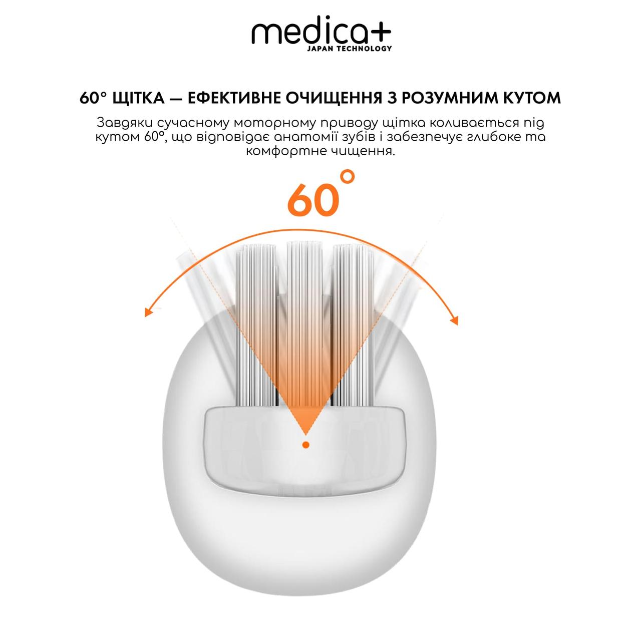 • Оптимальний кут 60° – повторює анатомію зубів, забезпечуючи стабільне очищення важкодоступних ділянок.